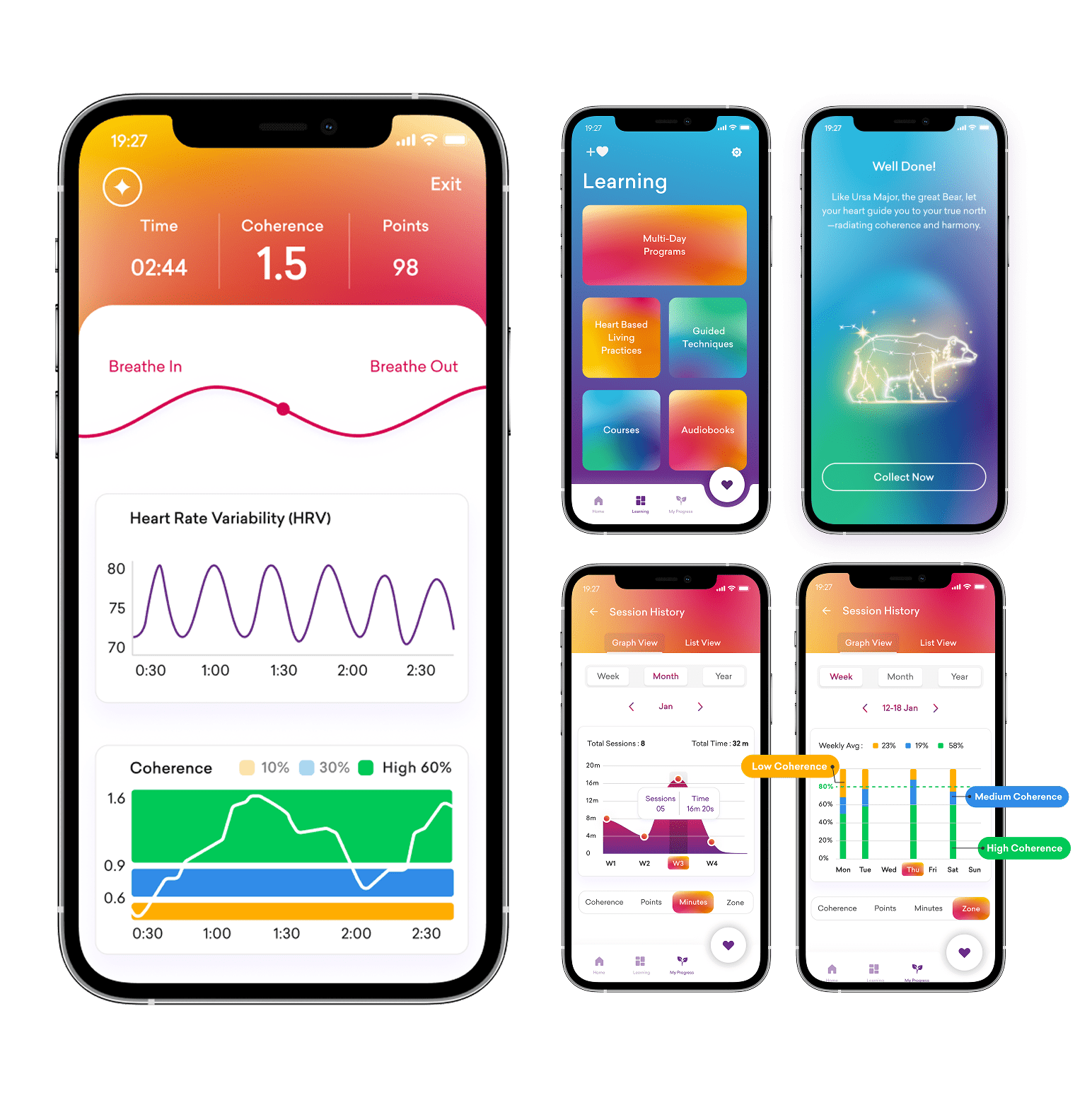 We recommend you start with the HeartMath app, which has a step-by-step onboarding process to teach you about the basics of coherence and many hours of expert-led experiences.